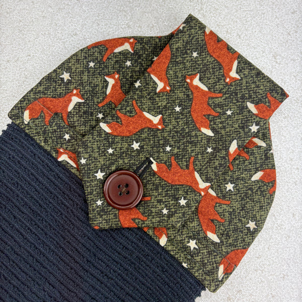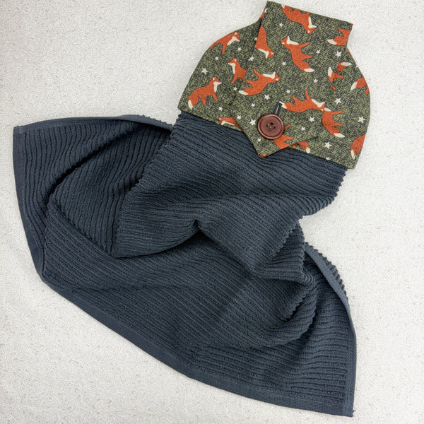 cotton topped towel with fox pattern in forest colors